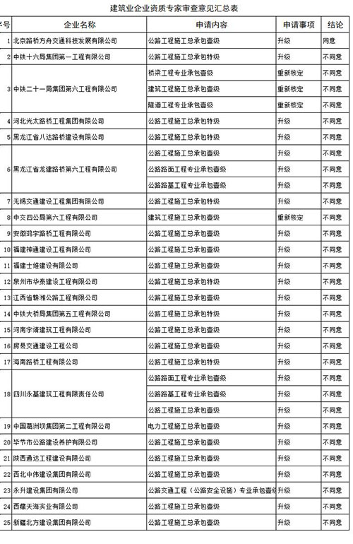 關于建設工程企業資質專家審查意見的公示