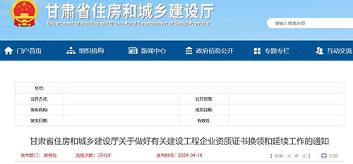 近日,甘肅省住建廳發布關于做好有關建設工程企業資質證書換領和延續工作的通知。