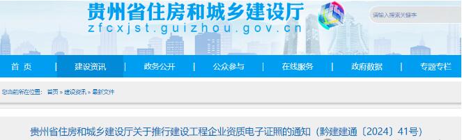 近日,貴州省住建廳發布關于推行建設工程企業資質電子證照的通知。