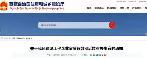 近日,西藏自治區住房和城鄉建設廳發布《關于建設工程企業資質有效期延續有關事宜的通知》,一起來看看。
