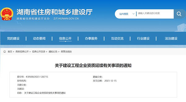 12月15日,湖南省住建廳發布關于建設工程企業資質延續有關事項的通知。具體內容如下: